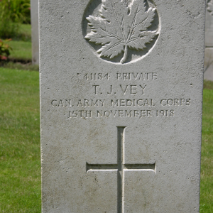 - Commonwealth War Graves Commission (CWGC), Private T. J. Vey, Shorncliffe Military Cemetery, England